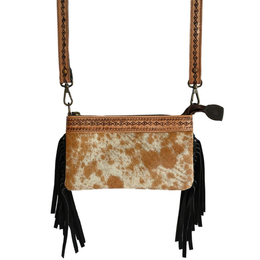 BILLIE Hand-Tooled Cowhide Fringe Crossbody Clutch Bag with Strap