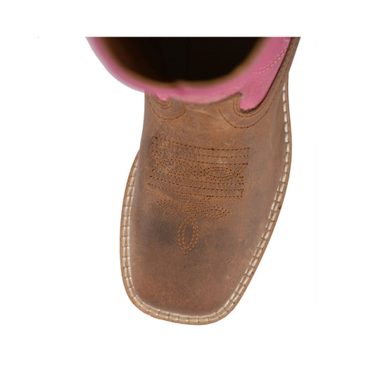 Kids' Western Molly Boots: Durable Square Toe, Padded Comfort, Distressed Brown/Pink
